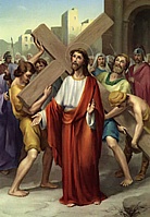 And Jesus, carrying his own cross, starts his “Way of the Cross”.  Weak and alone, but with great dignity, Jesus emerges from the fortress.  And yet…there was so much that he still had to accomplish. It was almost too great to bear.