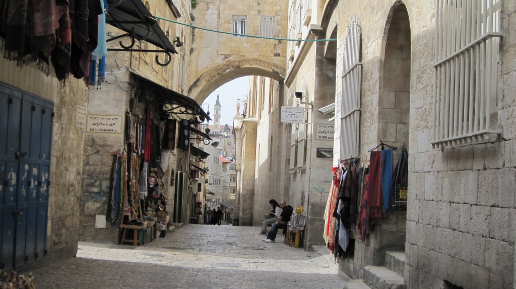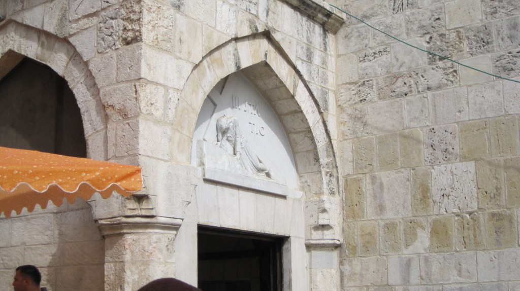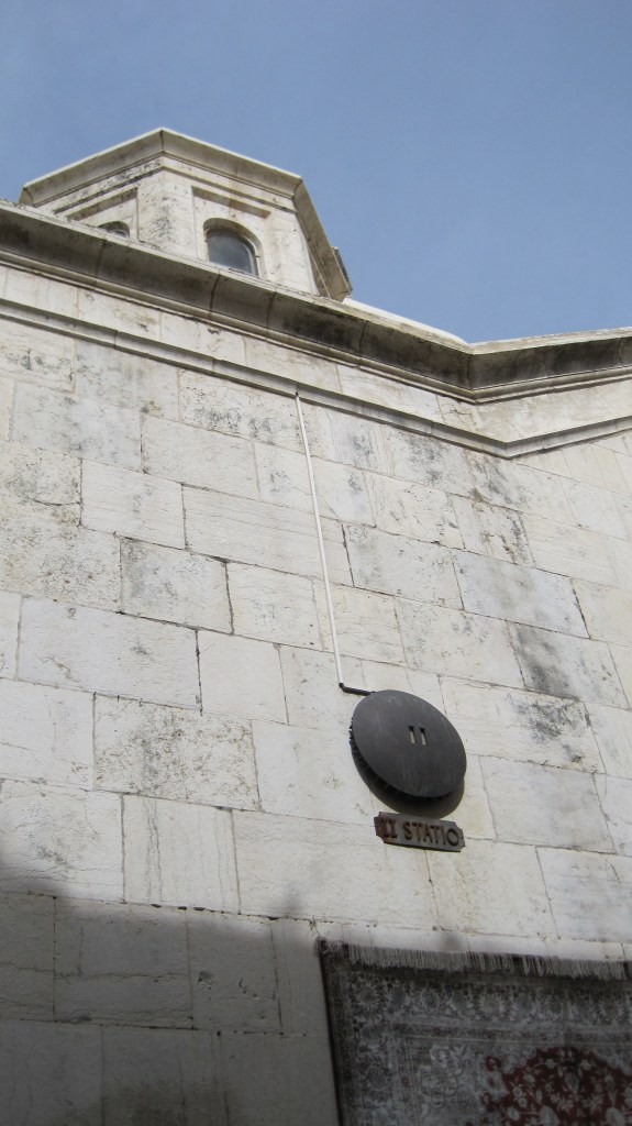As I mentioned a few days ago, our Holy Week walk will use the Via Dolorosa, the Stations of the Cross.  The Stations of the Cross generally refers to a devotion that originated in the 4th century when pilgrims flocked to the Holy Land from all parts of the world to visit the land of Jesus.  When they got there, the most popular place visited was the Church of the Holy Sepulchre, which had been built by the Emperor Constantine in 335 A.D. over what was believed to be the tomb of Jesus.  Over the years, the route of pilgrim processions—beginning at the ruins of the Fortress Antonia and ending at the Church of the Holy Sepulchre (the tomb)—was accepted as the way that Jesus had walked to his death.  It became known as the “Via Dolorosa”, the “Sorrowful Way”, or “Way of the Cross”.