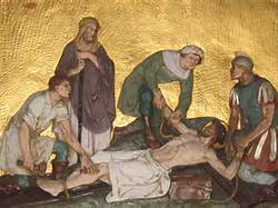 As a Jew, Jesus has been taught never to be seen naked. In those terms, this would be the ultimate disgrace. But Jesus’ disgrace is ours. His nakedness is ours. Stripped of his clothes and his dignity, Jesus remains unashamed. We can only ask God’s forgiveness for those times that we stripped others of their dignity and we realize that as the accoutrements of this life are stripped away, we have nowhere to turn but to God.
